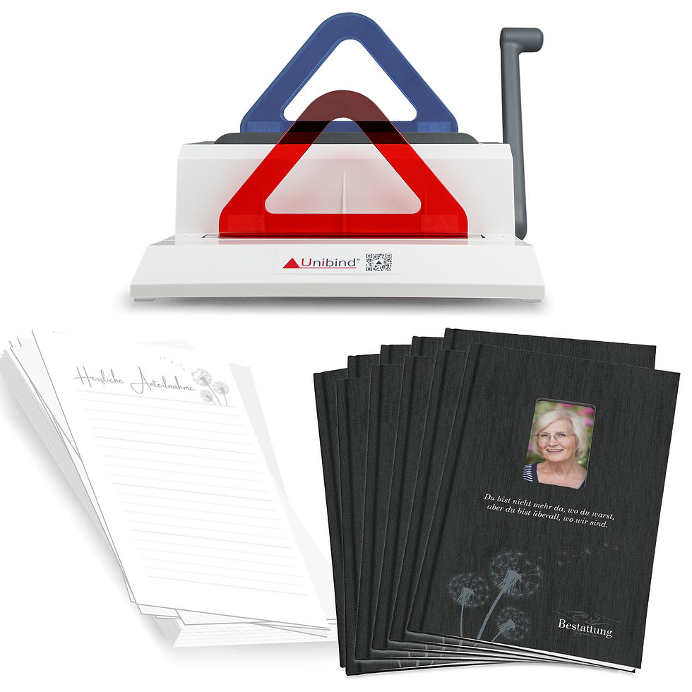 Kondolenční kniha za pouhé 2 minuty. Vložte do desek vybrané množství papírů a dejte do vazače. Za pár vteřin držíte hotovou knihu v ruce!